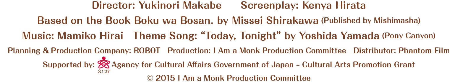 The film is based on the memoir Boku wa Bosan. (I Am a Monk) by Mitsunari Shirakawa, the real-life head priest of Eifukuji Temple, who vividly recounted his experiences in a beloved serialized column on Hobonichi Itoi Shinbun. Bringing the story to the screen is Yukinori Makabe, making his feature directorial debut after serving as assistant director on Always: Sunset on Third Street '64 and other acclaimed productions. The behind-the-scenes talent includes top-tier professionals from the Always series, including renowned cinematographer Kozo Shibasaki, a three-time winner of the Japan Academy Prize for Best Cinematography. Stunning visuals of Shikoku and Mount Koya also make this film a feast for the senses—an uplifting story that blends laughter, tears, and spiritual insight into one unforgettable journey.
