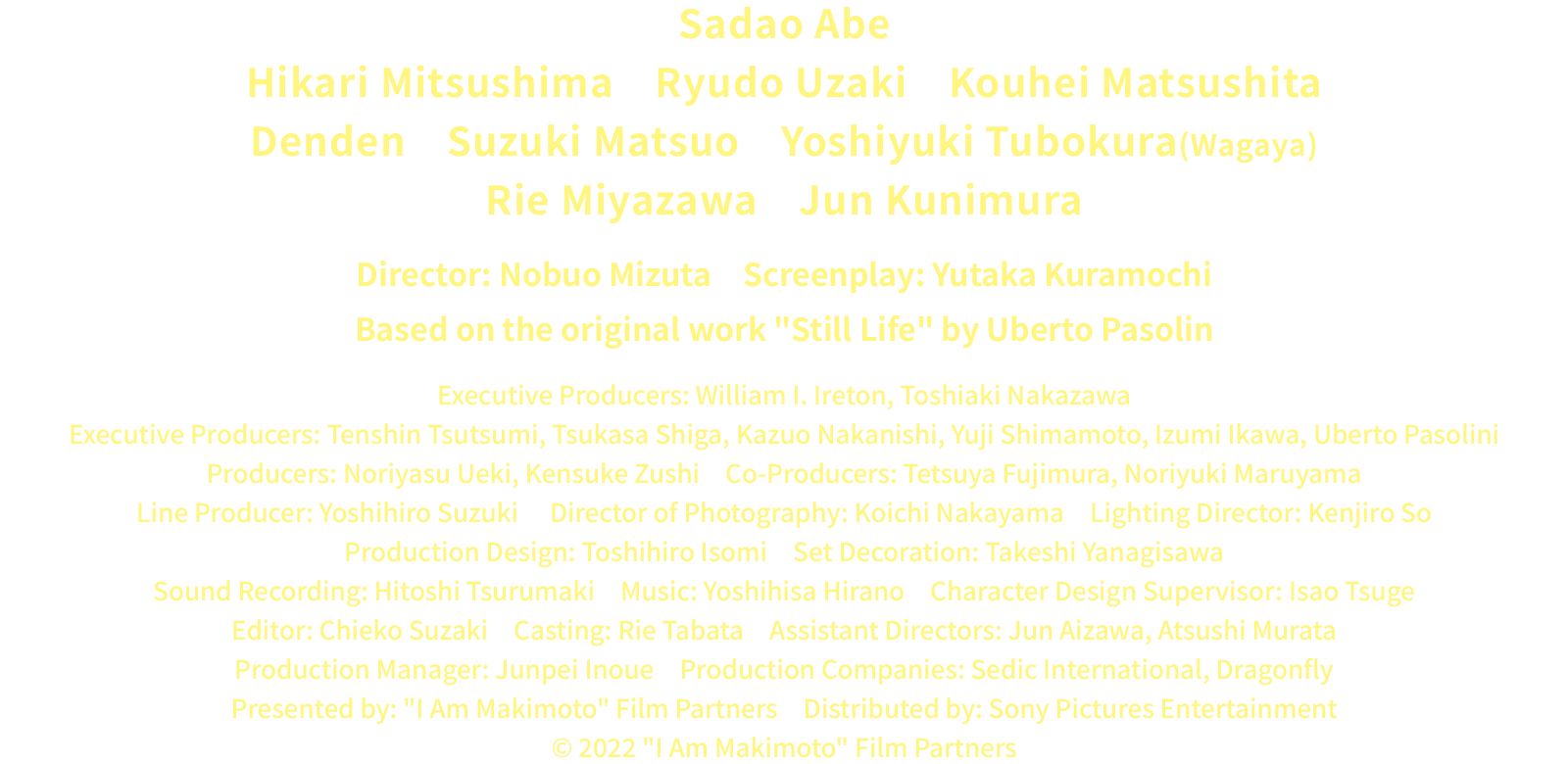 The story is inspired by Still Life (2015), directed by Uberto Pasolini, which won four awards at the 70th Venice International Film Festival. The screenplay, adapted by Kishida Kunio Drama Award-winning playwright Yutaka Kuramochi, reimagines the original’s socially resonant themes in a Japanese context, blending humor and heart. Under the direction of Nobuo Mizuta—known for We’re Millennials. Got a Problem? and The Demon of First Love—this tale of compassion and quiet miracles is brought to life as a moving and laugh-out-loud human drama.