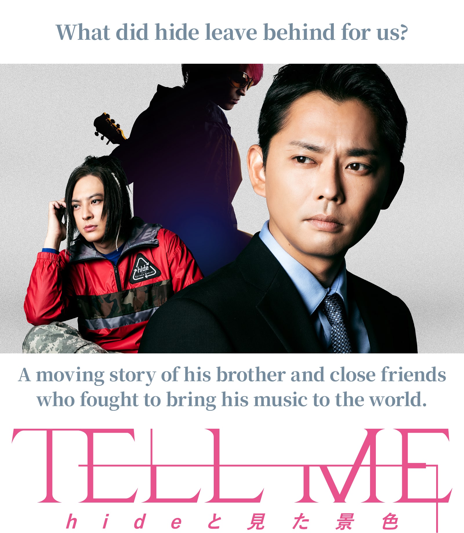 Based on the memoir "Kyoudai: Tsuioku no hide" (Brother: Remembering hide) by Hiroshi Matsumoto, hide’s real-life younger brother, this film tells a hopeful and heartfelt story about the music hide left behind—and how it was brought to the world by those who loved him. The film is directed by Renpei Tsukamoto, known for Bento Harassment (2019).