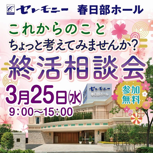 春日部ホールにて3月25日(水)に終活相談会を開催いたします。