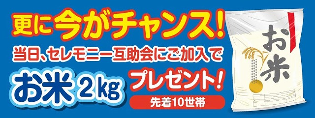 【当日入会特典】お米2kgプレゼント!(当日、互助会にご入会いただいた先着10世帯様)