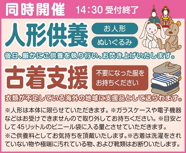 大切にされていたお人形やぬいぐるみを、後日心を込めて供養・お焚き上げいたします。