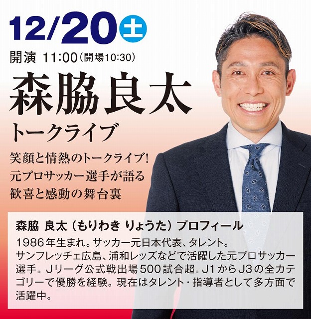 元プロサッカー選手が語る笑顔と情熱のトークライブ!