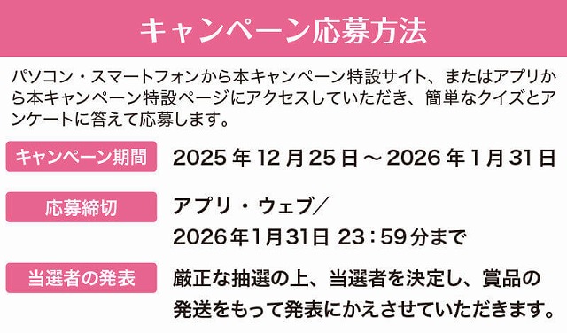 簡単なアンケートとクイズに答えて豪華プレゼントが当たるキャンペーン開催!