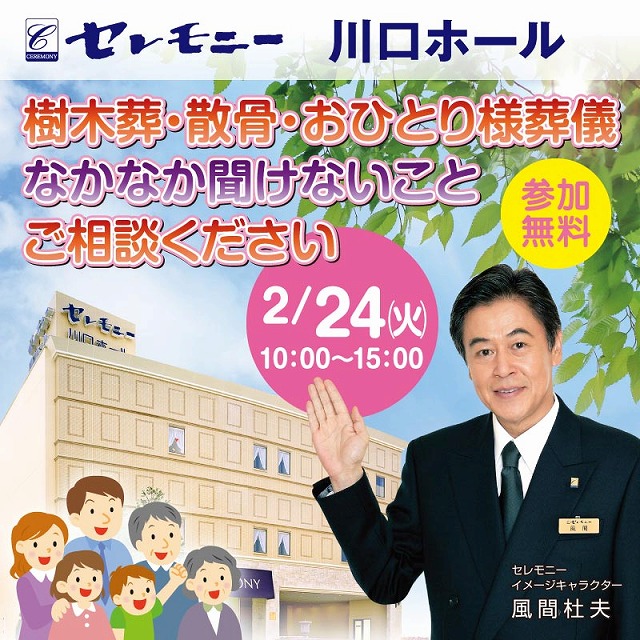 川口ホールでは2月24日(火)に、樹木葬・散骨・おひとり様葬儀など